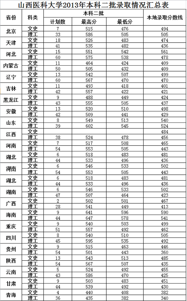 2013本科录取分数(省外)