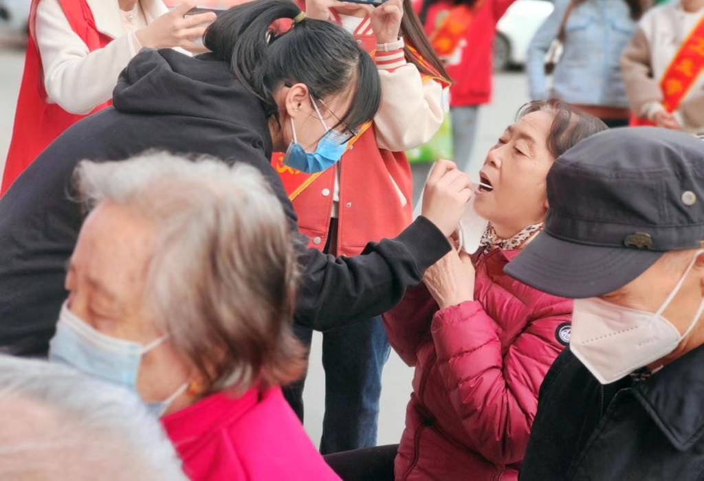 在医生的指导下,志愿者们为社区居民提供了免费的甲流抗原检测服务,帮助老人查看检测结果,并耐心为他们答疑解惑。同时,也为行动不便的老人提供上门检测,科普健康知识,做到了志愿服务的精准化,也得到社区居民的一致好评。