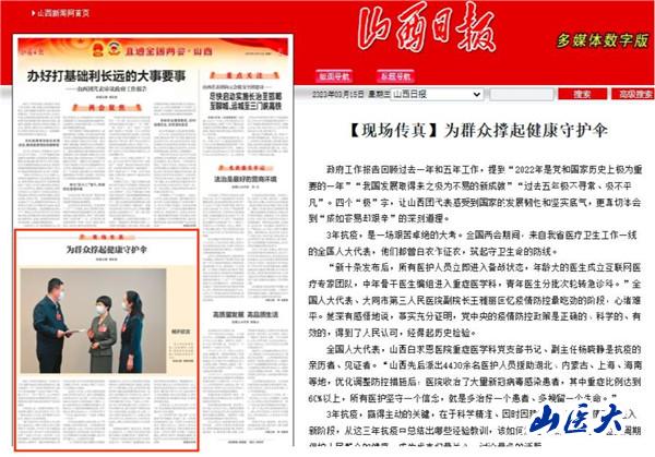 3月13日,《山西日报》第5版“直通全国两会·山西”刊发新闻通讯《为群众撑起健康守护伞》,就“健康山西建设”采访全国人大代表、农工党山西省委会副主委、我校校长解军。