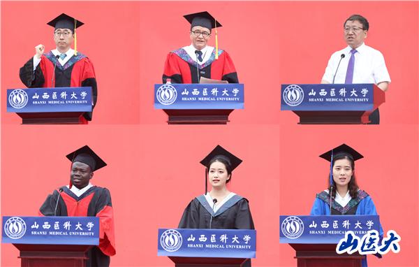 博士研究生毕业生代表、国际教育学院耳鼻喉学博士研究生科里,硕士研究生毕业生代表龙瑶琳,本科毕业生代表毛晓璐分别发表了毕业感言,代表全体毕业生向学校、老师、父母表达了崇高的敬意和由衷的感谢,回顾了在校度过的青春岁月,表示站在新的历史起点,赓续山医精神,在各条战线争做“排头兵”“顶梁柱”。
