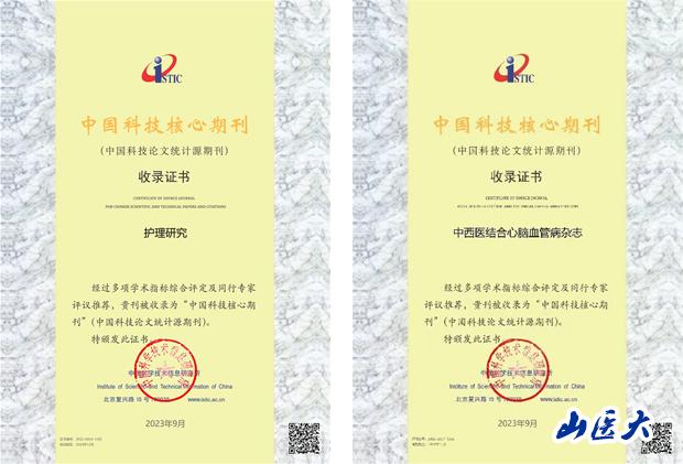 喜讯!我校第一医院主办的《护理研究》《中西医结合心脑血管病杂志》同时荣获“中国科技核心期刊”“第6届精品科技期刊”