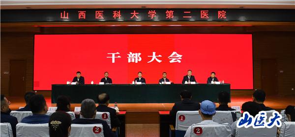 9月27日,我校第二医院召开干部大会,宣布省委对医院主要领导的任免决定。山西省卫生健康委员会党组书记、主任张波,我校党委书记王军,省委组织部干部五处副处长王斌出席会议。医院领导班子成员、各科室主任、党支部书记、护士长参加会议。会议由李保同志主持。