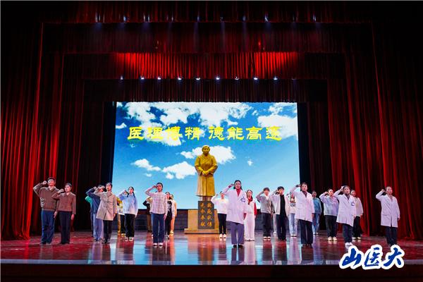 “医德高尚,医术高明”是雪芳精神的核心,是我校精神文化的重要组成部分,深深镌刻在学校发展的百年丰碑上。话剧《赵雪芳》大力弘扬雪芳精神,就是要教育引导山医学子传承雪芳精神、践行新医德要求,努力成长为“赵雪芳式”的人民好医生和健康守护者。
