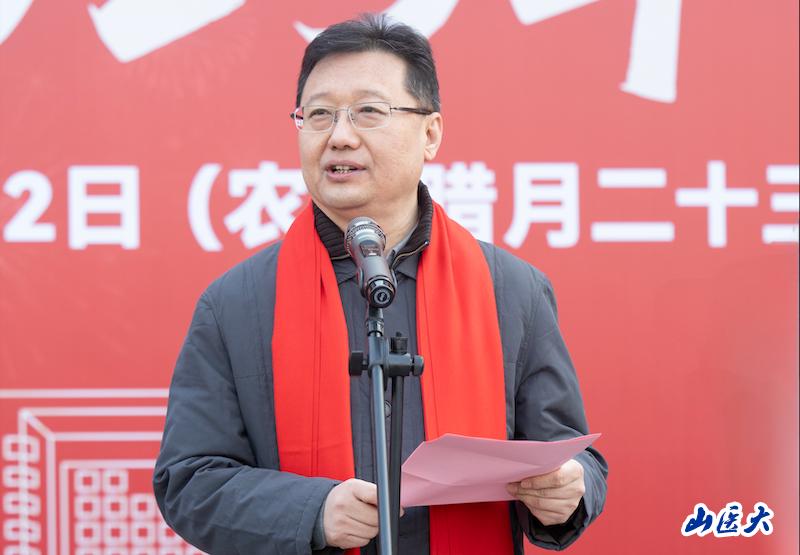 王军代表学校党政,向为学校发展作出重要贡献的老同志、勤勉敬业的教职医护员工、笃志好学的山医学子以及关心和支持学校发展的广大校友和各界朋友致以节日问候和新春祝福。他指出,2024年,学校坚持不懈用习近平新时代中国特色社会主义思想凝心铸魂,深入学习贯彻党的二十大和党的二十届二中、三中全会精神,扎实推进党纪学习教育走深走实,坚决扛起“双一流”创建使命,牢牢把握山西高等教育“百亿工程”重大机遇,齐心协力绘就发展新图景。“红石榴”工作室被中共中央、国务院授予“全国民族团结进步模范集体”。获赠学校百年华诞日在天安门广场升起的国旗。ESI全球排名前1%学科由3个增至6个。特种医学蝉联全国第一。联合华大在全国首开《智能生物计算》前沿课程,进入“全国教学创新强校TOP100”前40。国家重点研发计划重大专项单项经费达历史新高。首次获批国家基金委海外优青项目。成为全国首家获批国家原子能机构核技术研发中心的高校。入选《2024年中国内地高校顶刊发文年鉴》顶刊成果Top100高校。反向病原学徐建国院士工作站、“科技外交官之家”山西站落户学校。师生医护学习、工作和生活环境持续改善。