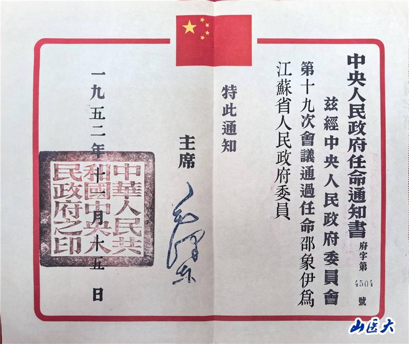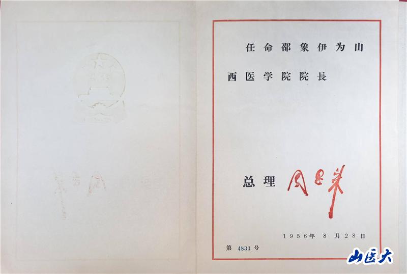 捐赠仪式上,邵坚先生和高秀女士作为邵象伊先生的亲属代表,将邵象伊先生在担任山西医学院院长、江苏医学院院长等重要职务时的任命书及各类荣誉证书、聘书、履历表、手稿等26件珍贵历史文物全部捐赠给了我校。这些文物不仅彰显了邵象伊先生的杰出功勋,更见证了他赤诚报国、甘为人梯的奋斗历程。学校将收藏好、使用好这些珍贵文物,让邵象伊先生的高尚品质和崇高精神代代相传。