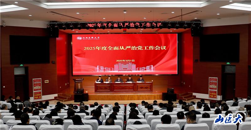 王军在讲话中指出,习近平总书记在二十届中央纪委四次全会上发表重要讲话,强调“坚持用改革精神和严的标准管党治党”,既彰显了全面从严治党在进一步全面深化改革、推进高质量发展新征程中的重要地位和作用,又为当前和今后一个时期纵深推进全面从严治党明确了方向。要深刻把握党中央全面从严治党新部署新要求,发挥全面从严治党的政治引领和政治保障作用,锚定学校第七次党代会战略部署,奋力推动学校事业高质量发展行稳致远。他指出,过去一年,校党委全面贯彻落实党中央关于全面从严治党战略部署和省委工作安排,抓政治强引领,理论武装不断强化。抓作风明纪律,推动党纪学习教育走深走实。抓基础固根本,基层党建质效持续提升。抓思政重德育,协同育人成效显著;抓关键盯重点,干部队伍建设不断加强;抓责任求实效,全面从严治党纵深推进。各级党组织和党员干部坚定把政治责任扛在肩上、记在心上、落实到行动上,全面从严治党取得新的进展和成效。王军强调,要巩固全面从严治党战略成果,在强化理论武装上持续发力、在狠抓巡视整改上持续发力、在夯实基层基础上持续发力、在凝聚监督合力上持续发力、在压实全面从严治党责任链条上持续发力,全面做好学校2025年全面从严治党工作,为谱写中国式现代化建设山西篇章作出山医新的更大贡献。