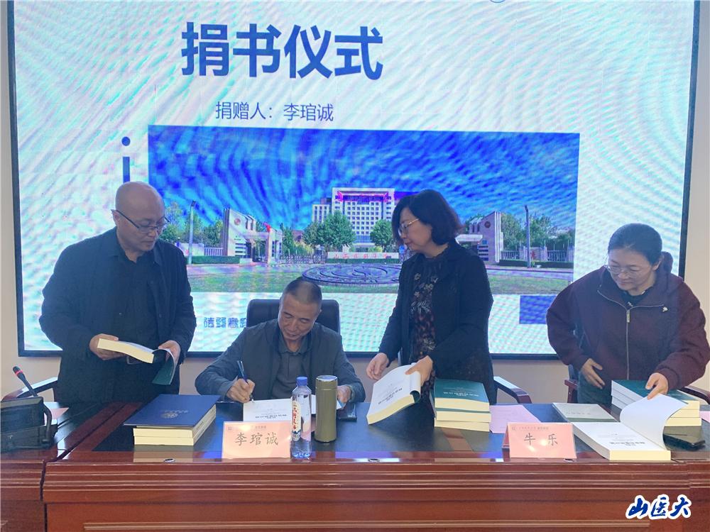 捐赠仪式上,牛乐和李建涛一起为李琯诚校友颁发了捐赠证书。李建涛代表学院对李琯诚校友的到访表示热烈欢迎,对他捐赠书籍的崇高之举表示衷心感谢!他强调,李琯诚校友捐赠的不仅仅是500册图书,更给我们带来宝贵的精神食粮和合作资源,我们将铭记在心。李琯诚校友还为学生代表签名赠书并合影留念,让每一位获赠学生都感受沐浴到浓浓书香。