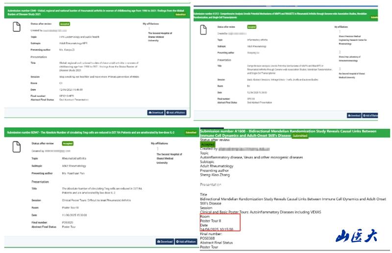 我校第二医院风湿免疫科30项研究成果被2025欧洲风湿病学年会录用