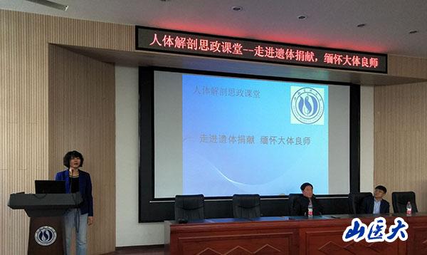 解剖教研室主任陆利教授主持了本次活动,她向学生强调了遗体捐献这一高尚行为对医学和解剖学发展的重要意义,并介绍了解剖教研室接收遗体捐献的情况,激励同学们用刻苦勤奋的行动感恩大体良师。