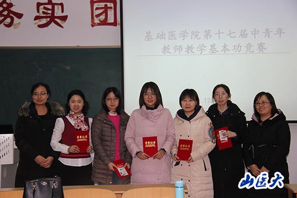 12月16日,基础医学院举办了第十七届中青年教师教学基本功竞赛,共有来自解剖学、生理学、生物化学、细胞生物学、组织胚胎学、微生物与免疫学、病理学、生物制药、化学和数学等教研室的19名中青年教师参赛。
