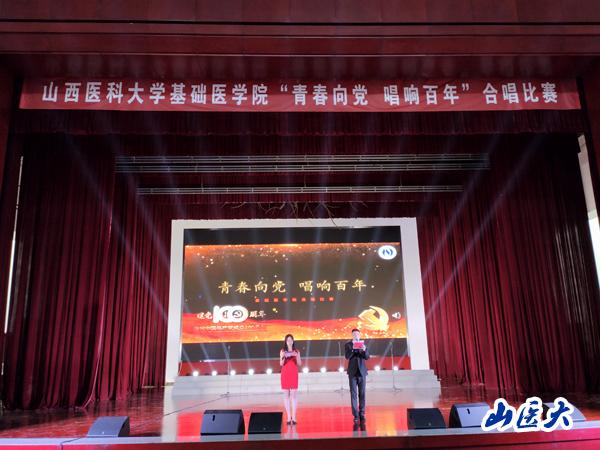 为教育引导广大青年学生继承和发扬党的光荣传统和优良作风,厚植爱党爱国情怀,传承红色基因,5月29日,基础医学院在大学生剧场举办2020级学生“青春向党唱响百年”合唱比赛。基础医学院副院长刘继斌、马克思主义学院形势与政策教研室主任李冰、纪委信访科科长弓辉、校团委副书记吴晓兵、校工会常虹、马克思主义学院尹婧以及学生会主席团成员罗京京同学应邀担任了本次比赛的评委,与在场的同学们一同聆听镌刻着红色印记的经典歌曲。