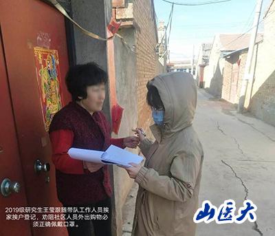 (2019级研究生王莹同学正在挨家挨户进行情况登记)