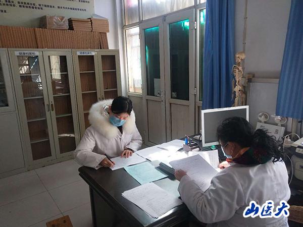 (2018级研究生樊江红同学在卫生室协助村医整理数据)