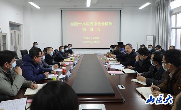 12月7日下午,省委教育工委书记,省教育厅党组书记、厅长吴俊清深入我校基础医学院党委第二党支部宣讲党的十九届五中全会精神,并指导所联系的基层党支部建设。校党委书记张俊龙,党委副书记贺培凤,教育工委组织部长张云鹏,校党委办公室、党委组织部负责人,基础医学院全体班子成员、基础医学院党委第二党支部全体党员共40余人聆听了宣讲报告。会议由基础医学院党委第二党支部书记王宁主持。