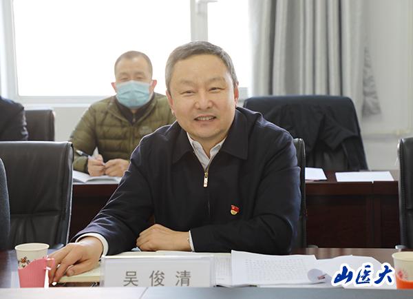 校党委书记张俊龙对教育厅领导能够对点联系并莅临我校基层党组织指导工作表示感谢。他聚焦“旗帜”“规划”和“行动”三个关键词,要求全校师生员工一定要深入贯彻落实党的十九届五中全会精神,紧紧围绕学校发展战略,力求把每一项工作都要做细、做实,同时要敢想敢干,大胆创新,勇于实践,全校上下拧成一股绳,把学校建设成山西省医学高校的领头雁,共筑百年山医梦。