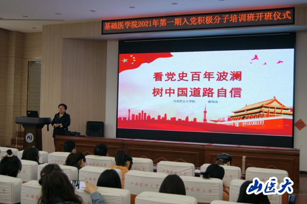 为了加深学生对党的认识,端正入党动机,4月25日下午,基础医学院2021年第一期入党积极分子培训班在中都校区开班。学院邀请校党史宣讲团团长、马克思主义学院直属党支部书记董海涛以《看党史百年波澜,树中国道路自信》为主题进行了专题讲座。