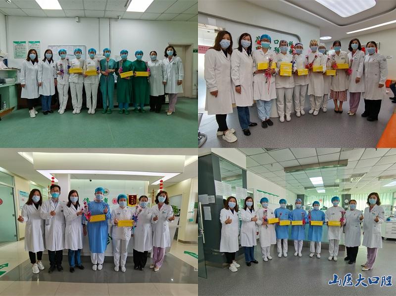 5月12日上午,我院党委书记任秀云、党委副书记、副院长李冰、副院长王翔宇、党办主任李利利及相关职能部门负责人走进各个临床科室,为坚守在工作岗位上的护士送去鲜花和护士鞋,并向她们致以最美好的节日祝福,希望护理工作者坚持人民至上、生命至上的理念,发挥技术专长,为患者的口腔健康保驾护航。