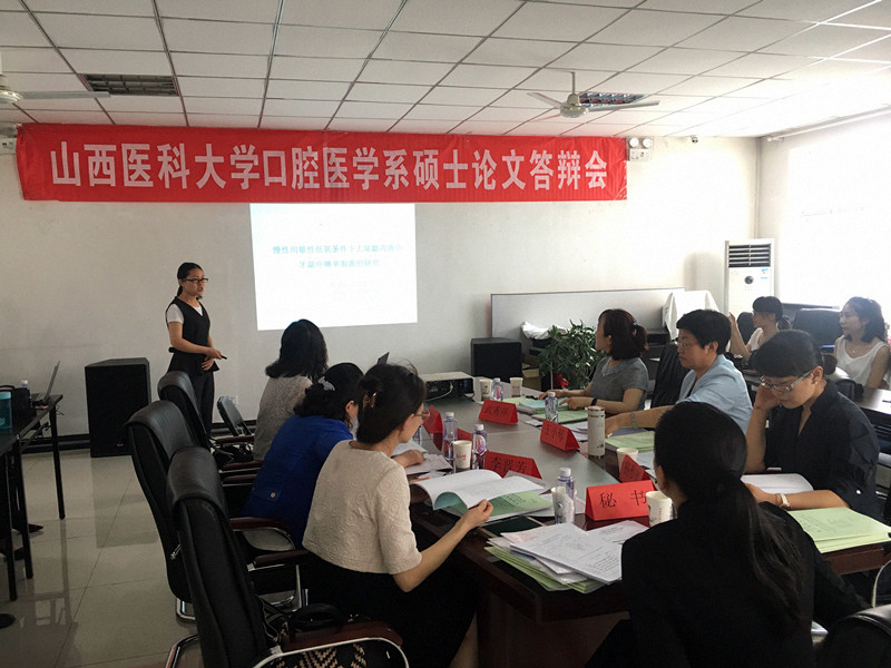 本次答辩会分别由口腔颌面外科教研室、口腔修复科教研室、口腔正畸教研室和口腔内科教研室自行组织,共44名硕士研究生参加。答辩过程中,研究生们认真汇报了自己的研究成果,评审专家们在听取汇报后,针对毕业论文的主要观点、理论框架、方法、创新点、论文格式及学术规范等方面进行了具有针对性的评价,并提出了需要进一步改进和完善的建议。评委们对此次研究生的学位论文整体质量及学生的现场答辩表现均给以积极的肯定。