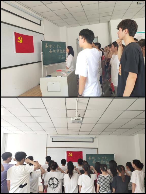 在侯芳宇老师的领誓下,全体党员面对鲜红的党旗,举起右手,重温入党誓词,用铿锵的语调,向党承诺,不忘初心、牢记使命,立足岗位做奉献,争先创优当先锋。