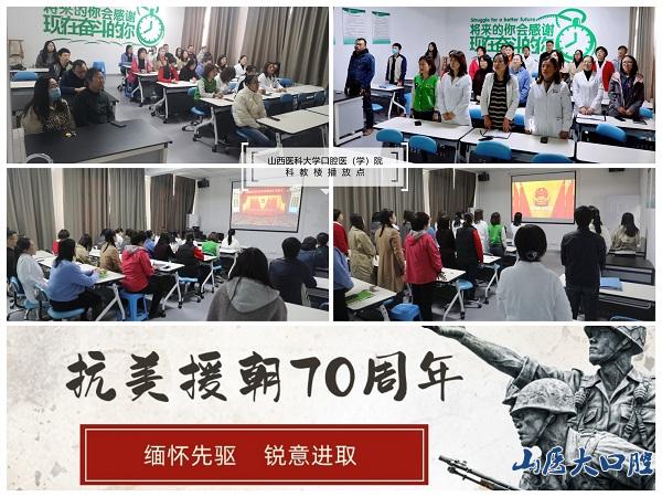 抗美援朝集中展现全国各族人民万众一心、众志成城的爱国情怀,充分彰显中华民族不畏强暴、维护和平的坚定决心,全院上下备受鼓舞。山医口腔人将坚持以习近平新时代中国特色社会主义思想为指导,大力弘扬伟大的抗美援朝精神,乘势而上、只争朝夕,为早日实现区域高水平的三甲口腔医院努力奋斗。
