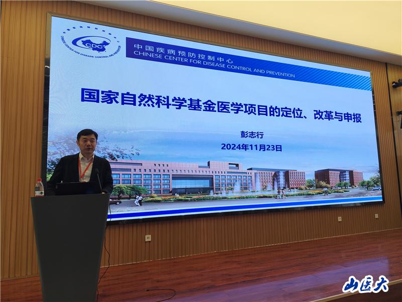 11月23日,我校特邀中国疾病预防控制中心彭志行教授来校做国家自然科学基金项目申报指导,副校长张岩波出席讲座,公共卫生学院各学科负责人、骨干教师和其他院系青年教师100余人参加了本次活动,讲座由公共卫生学院副院长邬惟为主持。