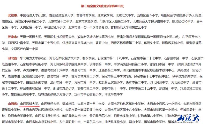 作为山西高等医学教育的领头雁,我校坚持用习近平新时代中国特色社会主义思想凝心铸魂,把精神文明建设工作作为建设全国一流研究应用型医科大学和“双一流”建设的重要载体,以立德树人为根本,培育和践行社会主义核心价值观。坚持以文化人、以文育人,对照文明校园“六好”创建标准持续推进各项工作,在传承中求创新、谋发展,在实践中抓特色、树品牌,不断优化和完善文明校园建设体系。学校是山西省首批理论学习中心组“双一百”示范点、社会主义核心价值观建设示范点和新时代“立德树人”教育评价改革试点高校。学校连续21年获评山西省精神文明单位(山西省“文明校园”)称号。