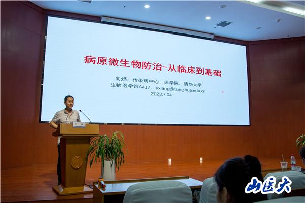 7月4日,智汇山医·学术交流会在我校中都校区图书馆一层多功能报告厅举行。清华大学医学院长聘教授沈晓骅、清华大学传染病中心研究员向烨作学术交流。各院系教师代表、研究生代表参加。校党委人才工作部部长蔡蕊主持。