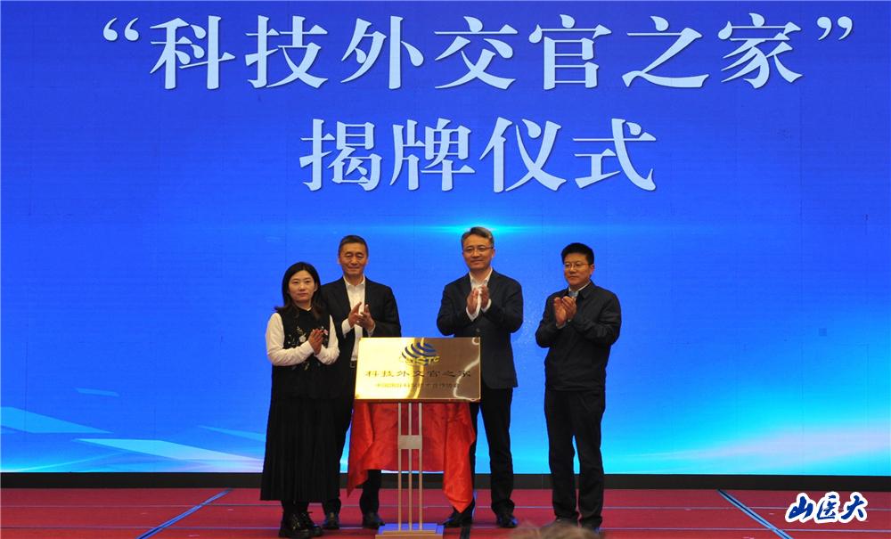 在省科学技术厅举行的第一阶段活动中,中国国际科学技术合作协会“科技外交官之家”山西站落户我校,刘俊义、靳晓明、孙丽杰和张岩波共同为“科技外交官之家”揭牌。