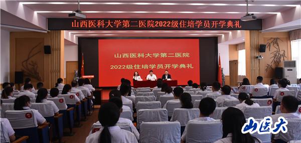 典礼上,赵斌代表医院对2022级新学员的到来表示祝贺和欢迎。他从百年二院的历史、医院概况、医院发展、医学教育、住培基地建设等方面给新学员作了介绍。他要求,学员们要主动学习、勤于思考、刻苦钻研,学以致用、踏实工作、全面发展;要传承二院精神,热爱医院、尊敬师长、明辨真理;要遵守医院规章制度,以住院医师规范化培训作为新起点,医教研全面发展,三年后都能顺利结业,成为优秀的复合型人才。