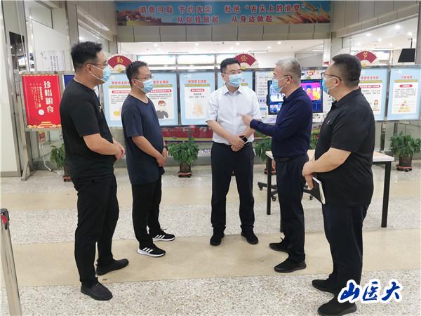 在第一食堂,王军同师生们亲切交谈,详细询问了静态管理期间学习、工作、生活等情况,对同学们密切配合学校静态管理、严格遵守防控规定、在宿舍潜心学习表示感谢,对食堂员工克服困难保供给、调换花样保餐饮、不辞辛苦保服务的敬业精神表示赞赏。“吃得好不好?”“吃得饱不饱?”“还有啥意见没?”每到一处,他都耐心与同学们交流、征求意见。解军仔细询问了餐厅菜品安排,了解了口味口感、荤素搭配、装盒打包、分发配送等工作情况。他要求,餐饮要每日合理搭配,量足、口味好,规范操作,切实做好食品卫生安全。