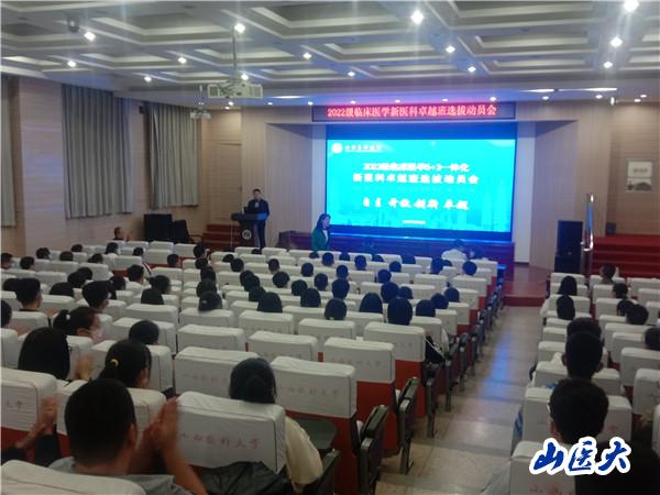 9月19日下午,教务处在中都校区基础医学院报告厅组织召开了2022级临床医学(“5+3”一体化)新医科卓越班选拔动员会。会议邀请第一临床医学院教育部部长、泌尿外科双卫兵教授,第二临床医学院风湿科主任温鸿雁教授、第三临床医学院教学部常佩雯、第五临床医学院科教处处长张刚利作为承担临床医学“5+3”一体化临床阶段教学培养的四所附属医院的专家为同学们做了详细的解读。2022级临床医学(“5+3”一体化)新生共150人现场聆听了动员报告。在今年山西省近30万考生中,该届学生高考最高位次2464,最低位次7648。
