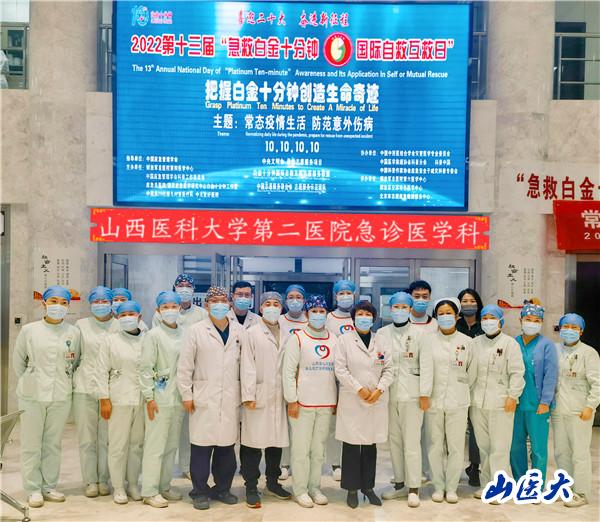 “终身学急救,救护伴我行”是2022年世界急救日的主题。“急救白金十分钟”是指应急意外伤病发生后,专业人员不能到达、时效最重要、救治最薄弱的早期10分钟左右时段内伤病救治的时效性原则和理论。包含了心肺复苏、除颤、解除梗阻窒息、徒手止血等急救技术,是启动120或常态应急救援系统并与之衔接的一个重要应急急救阶段。