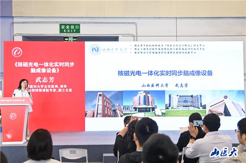 “核技术应用产业推广交流研讨会”上,武志芳重磅推介了由我校李思进教授团队研发的全球首台核磁光电一体化实时同步脑成像装备——PMEEN,这是全球首台实现PET(功能代谢)、MR(结构成像)、EEG(脑电)、ET(眼动追踪)及NIRS(近红外光谱)五模态实时同步融合的脑成像装备。该装备首次在国际上实现了实时、同步、高分辨、多维度自由组合观察脑神经活动,为基础研究和临床实践更高效、更精确、更全面获取脑相关信息提供支持。PMEEN用于神经精神疾病的早期诊断、鉴别诊断、危险分级、治疗指导、疗效观察等临床场景及脑疾病基础研究,为人类“理解脑、保护脑、创造脑” 提供技术支撑。 PMEEN通过一次扫描获得脑部疾病诊断当中常用的PET、MR、EEG、ET、NIRS的五模态实时显像,节省了患者的就医时间成本,提高了疾病诊断效率,提升了神经疾病诊断效能。该项目凭借在脑科学研究领域的突破性创新,引发政产学研界高度关注。