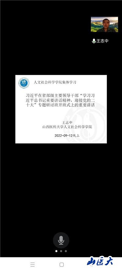王志中精心制作幻灯片,领学了习近平总书记在省部级主要领导干部“学习习近平总书记重要讲话精神,迎接党的二十大”专题研讨班上的重要讲话精神。他从习近平总书记的讲话背景、讲话要点、讲话意义三个方面进行了解读。他以历史的维度和发展的视角讲解了回答新时代三大课题的内容并在最后点题人民性,强调了即将召开的党的二十大对团结和激励全国各族人民为夺取中国特色社会主义新胜利而奋斗具有的十分重大的意义。