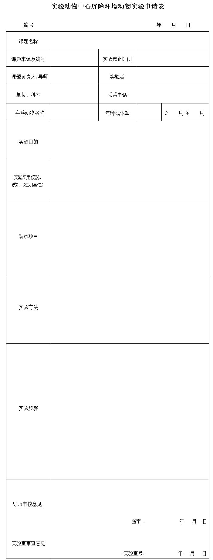 实验动物中心屏障环境动物实验申请表-实验动物中心
