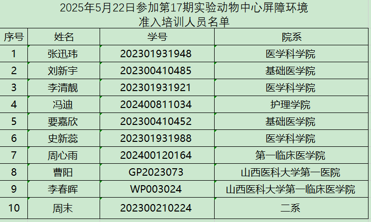 请以下参培人员于5月22日下午14:30至动物中心三层多功能会议室参加培训和考核。