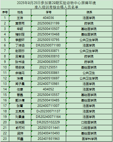第29期屏障环境准入培训合格人员名单-实验动物中心