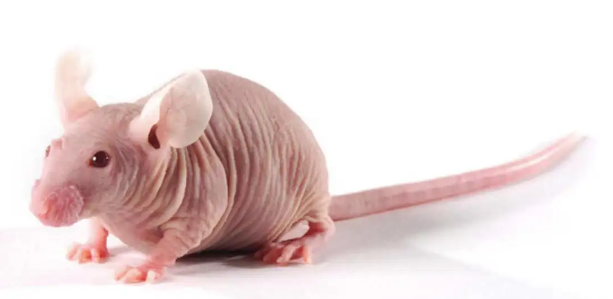 裸鼠:1962年英国格拉斯哥医院在非近交系小鼠中发现个别无毛老鼠,并伴有先天性胸腺发育不良,经过培育后形成突变系裸小鼠。特征为先天性胸腺缺陷,胸腺依赖性免疫功能缺乏,T细胞功能接近于零,人体肿瘤异种移植时无排斥反应,没有被毛,皮肤裸露,便于动态观察肿瘤的生长状态,抵抗力差,易患病毒性肝炎和肺炎。广泛用于肿瘤学、免疫学、微生物学和毒理学等研究领域。