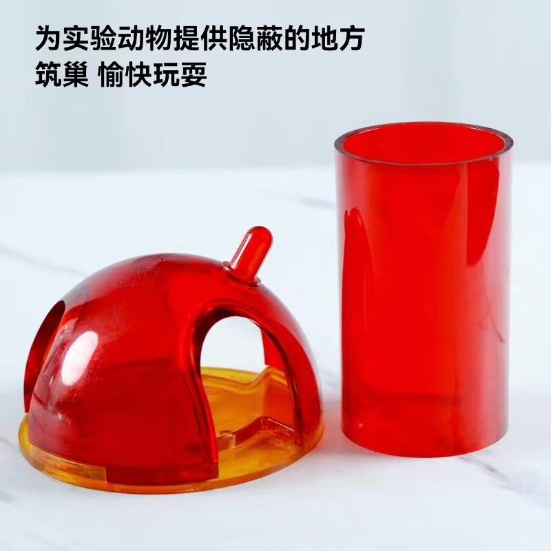 为了让实验动物保持身心健康,环境设施内还配备了各种娱乐设施。例如,灭菌的纸巾、红色水晶屋等是小鼠的专属玩具,这些设施可以增加小鼠生活环境的丰富度,满足它们撕扯、筑巢的天性。此外,设施内还会定期更换垫料,保持环境洁净和干燥,为动物提供一个舒适的生活环境,确保实验动物福利。