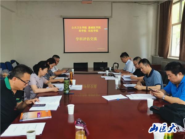 7月22日下午,基础医学院、公共卫生学院、药学院和法医学院在迎泽校区转化医学中心一层会议室联合召开第五轮学科评估校内交流会。基础医学院院长焦向英、公共卫生学院院长王彤、书记张志红、药学院院长张淑秋、法医学院院长贠克明参加了会议。会议由张宇、张文平、梁泰刚联合主持。