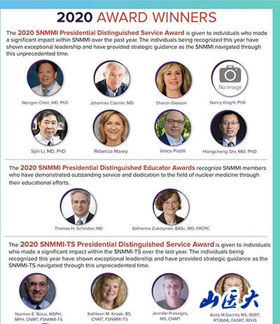 据悉,SNMMI主席杰出贡献奖是由SNMMI主席提名并经会议讨论通过获得。2020年SNMMI主席特别贡献奖是颁发给在过去一年中对SNMMI产生重大影响者,尤其是在SNMMI经历史无前例的特殊时期中,今年的获奖者要具有非凡的领导力和卓越的建树,对业界的发展及重大决策等方面发挥了关键性的作用。国内同时获得该奖项的还有中华医学会核医学分会副主任委员、复旦大学中山医院石洪成教授。SNMMI主席特别贡献奖设立于1970年,至今共授予60余人,今年首次授予华人。