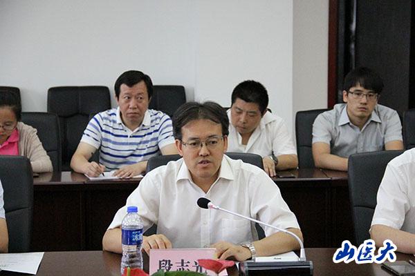 段志光校长致欢迎辞,他首先介绍了我校历史发展、新校区建设、“1331工程”推进基础医学学科遴选的过程。并指出,基础医学入选省“1331工程”优势特色学科,既是终点也是起点,对学校的学科发展有着非常重大的意义。