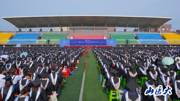 全体校领导、第一医院、第二医院书记院长,校学位评定委员会委员、分委员会委员,导师代表在主席台就坐,学校各部门、各院系负责人,毕业生思想政治辅导员和全体2021届毕业生现场参加了毕业典礼。仪式由副校长解军主持。