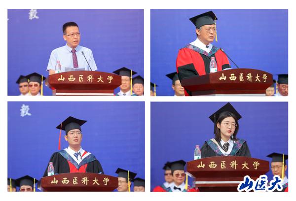 典礼上,山西省人民医院肾内科专家李亚峰主任医师作为校友代表致辞。博士生导师、国际法医遗传学专家严江伟教授作为教师代表进行了发言。2021届研究生毕业生代表姚添同学和2021届本科毕业生代表陈雪昭同学发表了毕业感言。