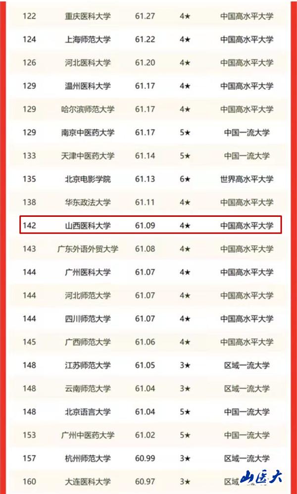 1月25日,全国第三方大学评价机构艾瑞深校友会网(Cuaa.Net)正式公布2022中国大学排行榜,我校在全国高校排名中居第142位,较2021年提升18名;在山西省高校排名中居第4位,较2021年提升1名;在全国医药类院校排名中居第19位,较2021年提升1名。