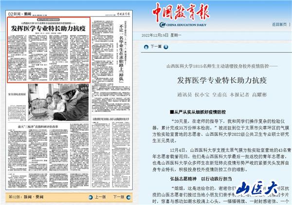 12月19日,《中国教育报》在第2版(新闻·要闻版)头条刊发了题为《国产亚洲精品美女久久久_99久无码中文字幕一本久道_亚洲成AV人影院_亚洲AV影院一区二区三区 狠狠躁夜夜躁人人爽天天不卡_国产激情久久久久影院老熟女_精品性高朝久久久久久久1815名师生主动请缨投身校外疫情防控——发挥医学专业特长助力抗疫》的新闻通讯,专题报道我校师生发挥医学专业特长,投身疫情防控,为国家作贡献、为社会尽责任,以实际行动彰显新时代山医人的使命担当。