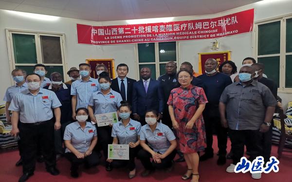 1月12日,第20批中国(山西)援喀麦隆医疗队受到中国驻喀麦隆大使馆的表彰,冀兵队长代表第一医院全体队员领奖。中国驻喀麦隆大使馆大使王英武高度肯定了第20批医疗队一年来的辛勤努力和作出的重要贡献。他表示,医疗队在当地条件有限的情况下,克服重重困难,为当地政府和受援医院作出了突出贡献,尤其是在防控新冠疫情方面,协助所在医院强化防控措施、培训医护人员、捐赠防疫物资等,以实际行动践行了“不畏艰苦、甘于奉献、救死扶伤、大爱无疆”的援外医疗队精神。同时,医疗队还积极为使馆、中资机构和华人华侨提供健康保障。