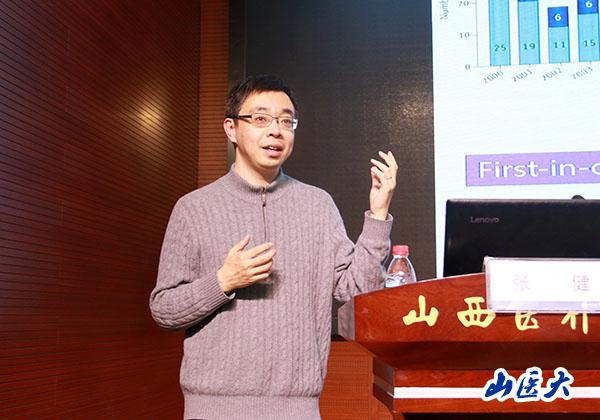会见后,张健教授在中都校区教学办公楼学术报告厅作了题为《创新药物研发的进展与挑战》的学术报告。他从创新药物的发展历史、突破方向等角度着手,结合精准靶标识别和原创药物先导发现等科研工作,进行了深入浅出的讲解,并同与会师生深度交流。200余名师生聆听了报告会。