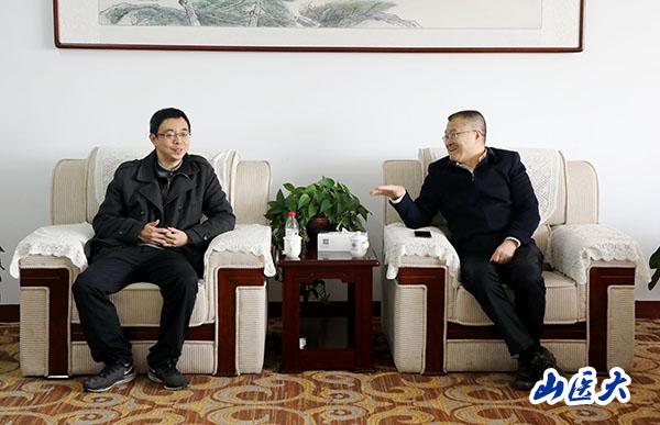 会见中,张俊龙对张健教授的来访表示热烈欢迎。他介绍了我校历史沿革、学科布局以及改革发展总体思路,就药学院学科发展、学位点建设、人才培养和服务产业等工作与张健教授进行了深入交流。