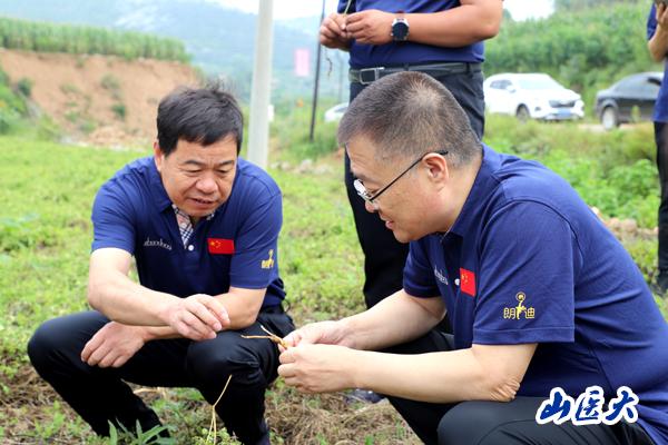 在基地观摩中,张俊龙教授项目组深入陵川潞党参试验基地及振东道地药材公司平顺中药材种植基地车厢沟,实地观摩潞党参生物肥试验及套种间作生态种植模式,北柴胡间作套种、生物覆草技术及糖链植物疫苗提质增效技术等生态种植模式;查看潞党参、北柴胡生长情况,讨论交流潞党参、北柴胡种质资源保护及新品种选育研究;详细解答、现场指导项目实施过程中企业遇到的技术问题。